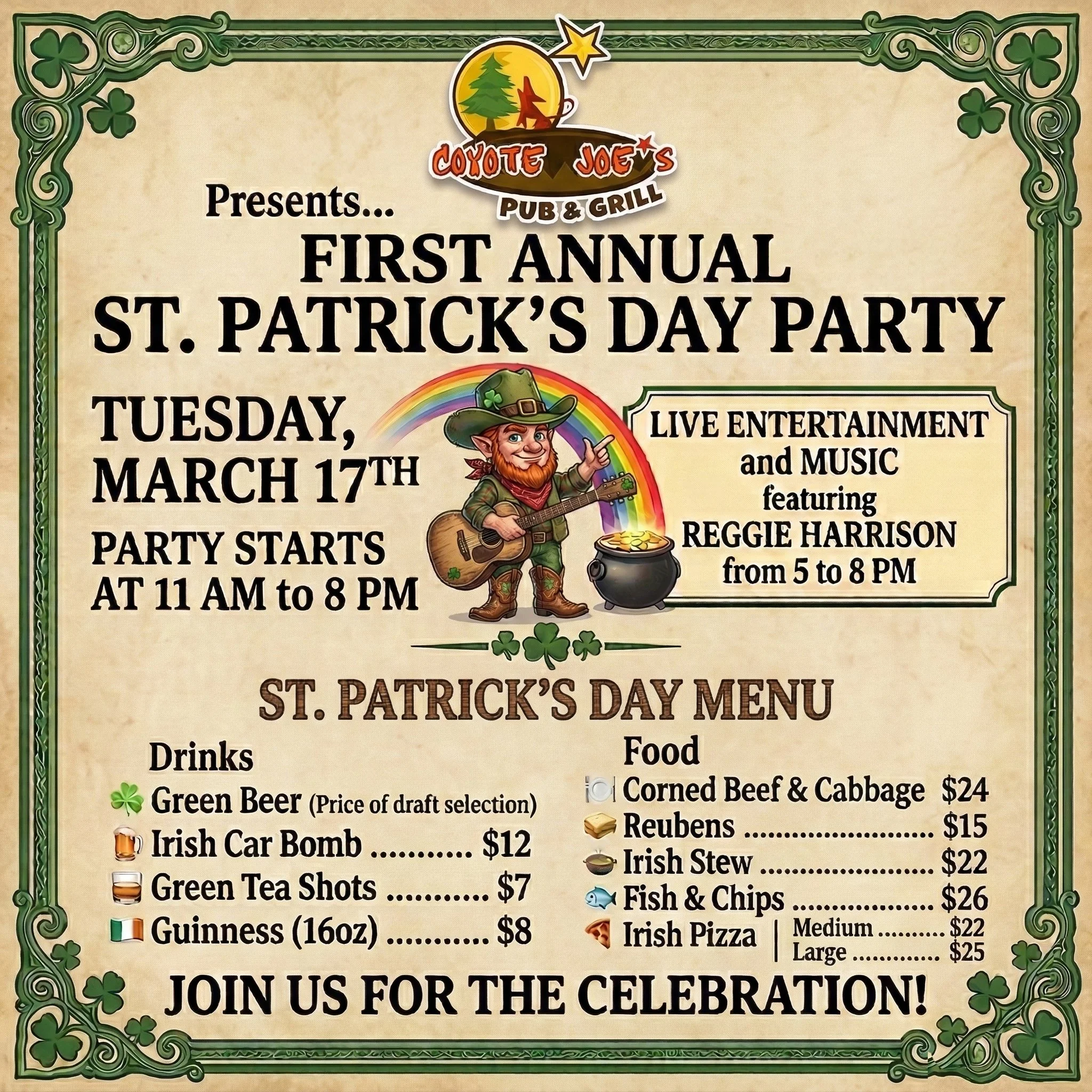 Coyote Joe’s Pub & Grill is bringing bold flavors, classic pub favorites, and a welcoming atmosphere made for gathering. Come hungry, leave happy, and make yourself at home.